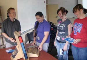 The last station demonstrated the hydrologic cycle and how it is affected by climate change. Ingrid Tohver, from JISAO’s Climate Impacts group, and UW grad student Julie Vano used a large wooden model created by UW engineering professor Alan Hamlet to show students the many ways mountain ranges collect, store, and release water.