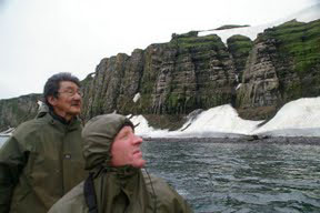 A telling example of the research being done in this arena involves analysis of walrus hunts out of Savoonga, a village on the shore of St. Lawrence. The analysis is being guided by Henry Huntington (a lead investigator for the LTK component of BSIERP) and George Noongwook (Savoonga elder and hunter and head of the Savoonga LTK effort), pictured above. Its objective is to determine how walrus harvests in the spring relate to the winds and ice conditions. The subsistence hunters of Savoonga have long considered that these conditions influence the success of their hunts, and under the auspices of BSIERP, the data has been put together to put these relationships in quantitative terms. Under Noongwook’s direction, and with the assistance of the U.S. Fish and Wildlife Service, the number of walrus harvested per season was compiled for the years of 1991-2009. Data sets of environmental conditions were amassed by two UW PIs with BSIERP, with Nick Bond of JISAO determining the number of days per spring with favorable winds (according to local hunters) and Jinlun Zhang of APL characterizing ice concentrations on the north side of St. Lawrence Island. The interesting resultĀ was that neither wind nor ice was strongly related to the hunting success when considered in isolation, but when combined, showed indeed that springs with a greater proportion of “good” days yielded systematically higher harvests. The analysis indicated that there were two outlier years in which the environmental conditions seemed favorable, but there were relatively poor hunts. It is suspected that fog may have played an important role in these years, because of its impacts on navigation and ultimately limiting the number of hunting trips.