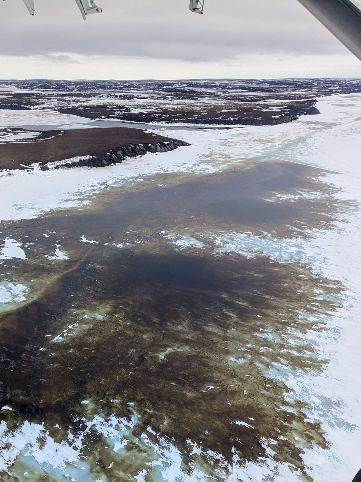 As we took off for the last time, the lake below looked different: the cracks wider, the snow thinner, a darker color spreading from the inlet. The Arctic summer was coming.