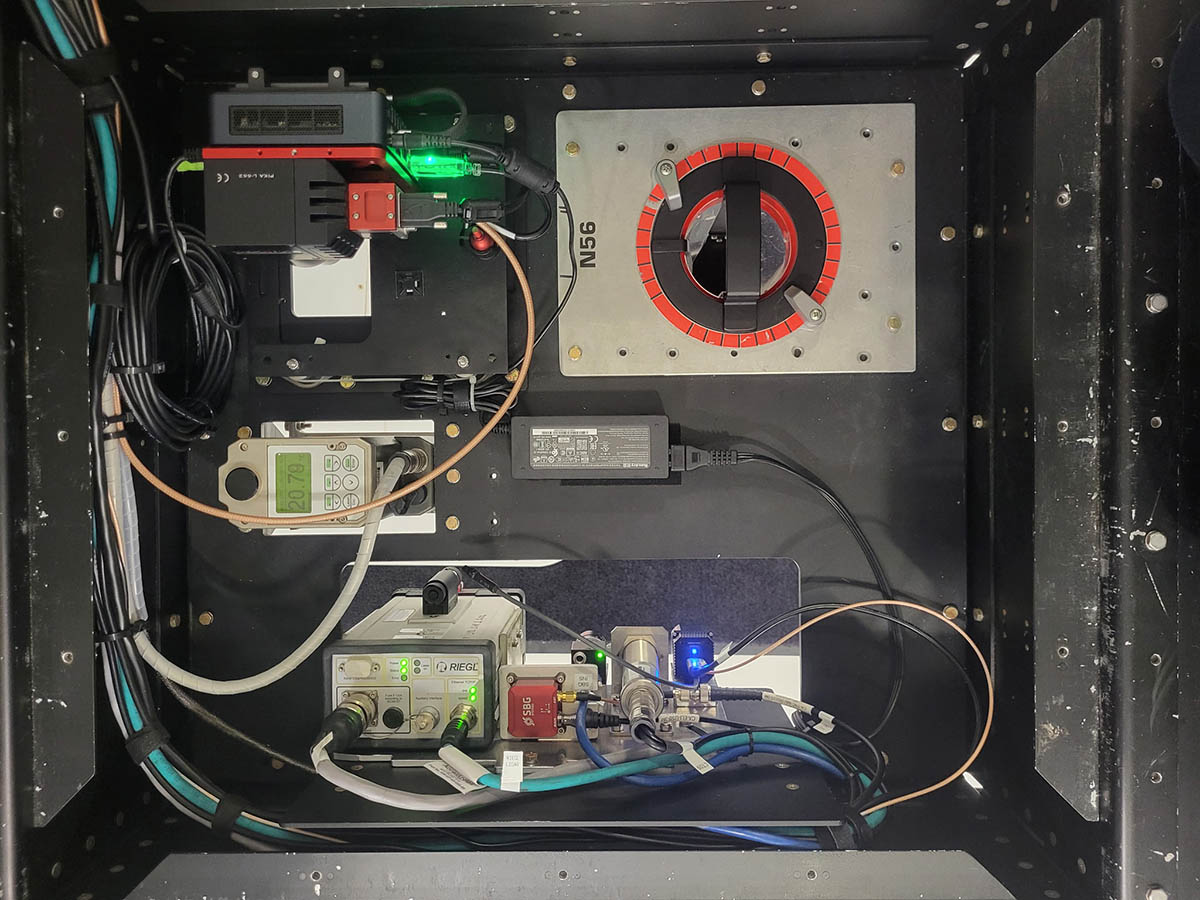 Close-up of the research crew's instrument bay. Several wires are connected to a variety of sensors and equipment.