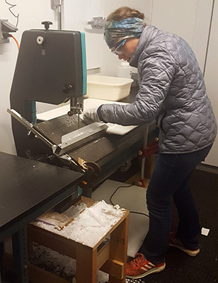 Obtaining the ∆17O(NO3–) value required extensive sample preparation before final analysis on a mass spectrometer for isotopic composition. The most memorable step of the sample process though is probably the first, which involves donning many layers of warm clothing and walking into a -7oC freezer to cut pieces of the ice core. The rest of sample preparation, thankfully, occurred at room temperature outside the freezer!